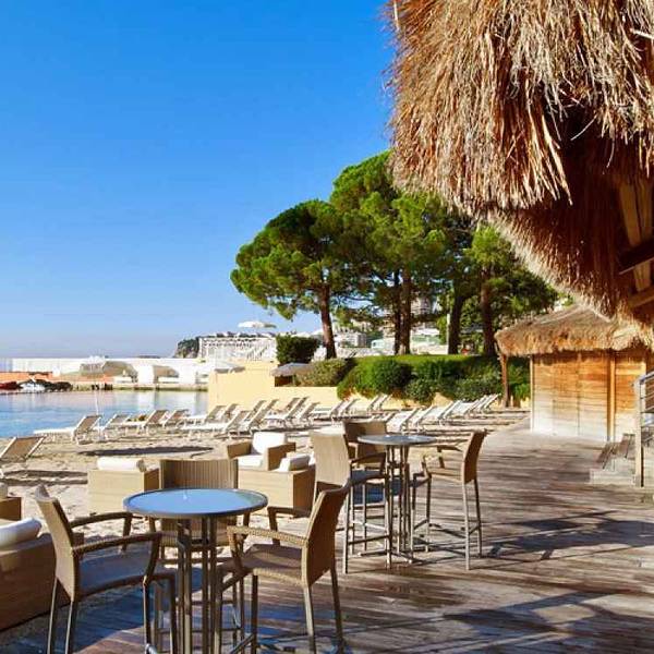 你可以完全沉浸在真正独特而又充满异国情调的氛围中,那是一个传统的巴厘岛型酒吧,有着原始的阿朗茅草屋顶,在蒙特卡洛唯一私人海滩酒店还可以鸟瞰整个地中海美景。