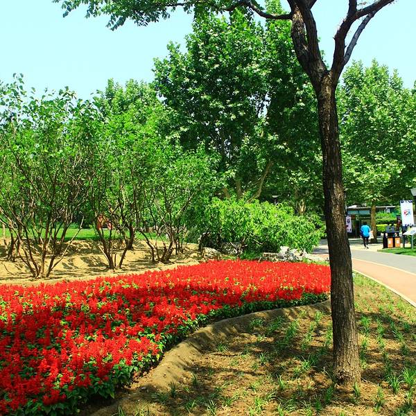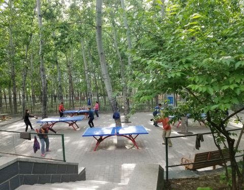 公园的环境还是不错的,树木和花草都不少,还有个湖,景致挺好的。公园里有运动的场地,来打球的人还不少