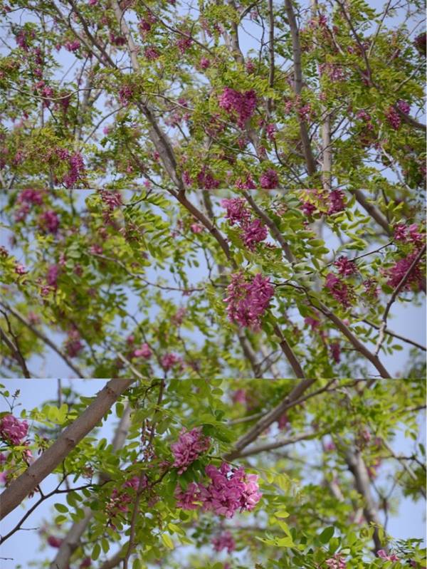 这两棵树位置在公园东门的足球场后面。很好找,开得非常耀眼。