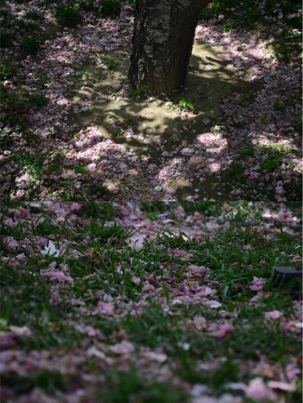 但lilith今天来,是为了公园内的两棵网红晚樱。前几天挂了几天大风且气温骤降,使得状态稍显不好了一些,落花很多,但依然有很多花花坚强的挺住了。春季最后一个节气过了,就算来抓一下春天的尾巴吧。