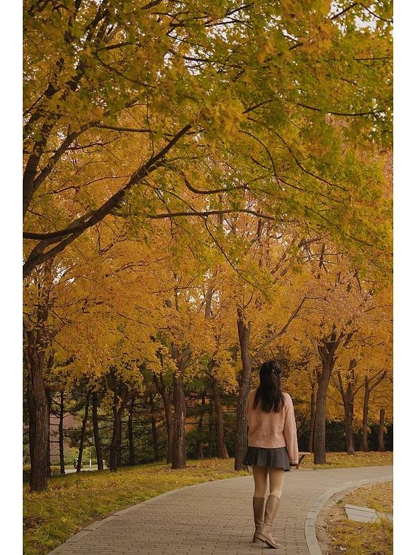 出名的摄影点在森林剧场附近,进门直走不远即可达,算是公园的核心地带了,因为是一个可以容纳2000人的露天剧场,所以有缓缓升起的土破,造成了空旷的视感;坡上是成片的元宝枫树,刚好到了最美时节,颜色多变,很多人来打卡拍照;配合一张张木质长椅,真的是出片的好地方