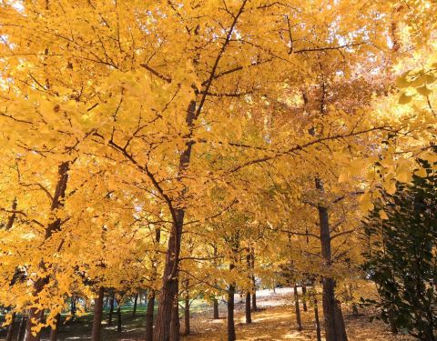 湖心周边,种植了很多植被,有枫树也有银杏,都已进入最佳观赏期