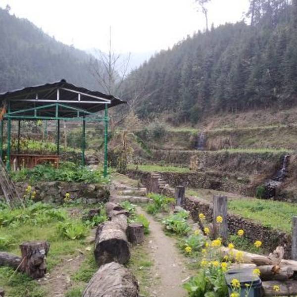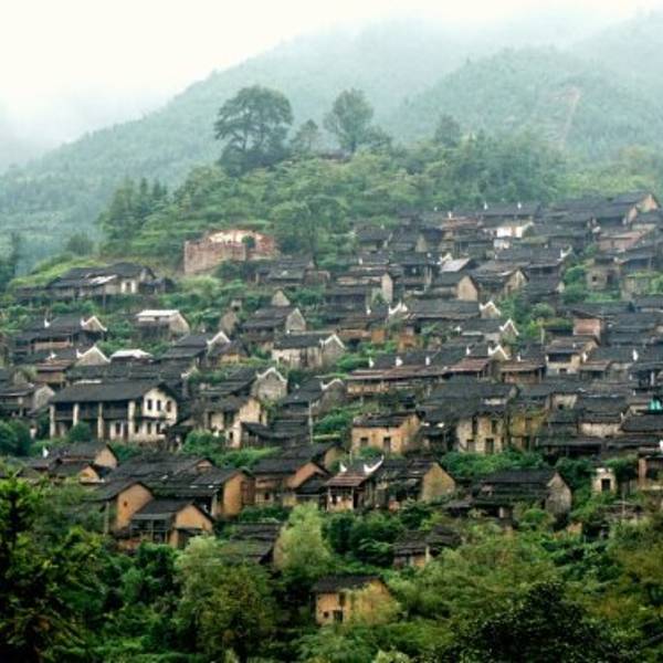 我们徒步入村,沿着石阶拾级而上走到山顶。 展开