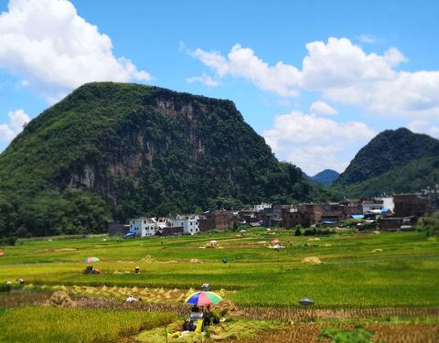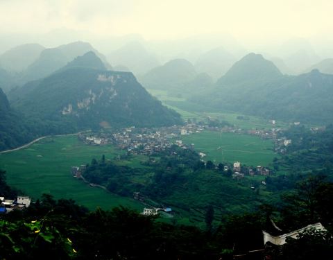 房东为我们煮了一窝猪杂粥和炒米粉,吃过早餐后,看雨停了,便出发去看古寨,因山坡很陡,房东建议我们从小路徒步爬上去,但最后还是...昨夜睡了一好觉。此地海拔四百多米,群山环抱,晚上气温只有22度,不用空调。
