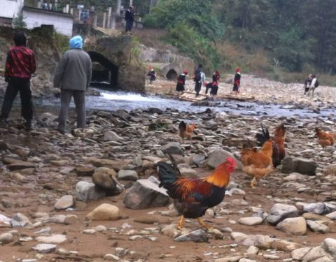 房东为我们煮了一窝猪杂粥和炒米粉,吃过早餐后,看雨停了,便出发去看古寨,因山坡很陡,房东建议我们从小路徒步爬上去,但最后还是决定骑车,正好考验一下自己的上坡能力。