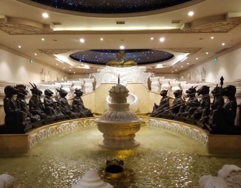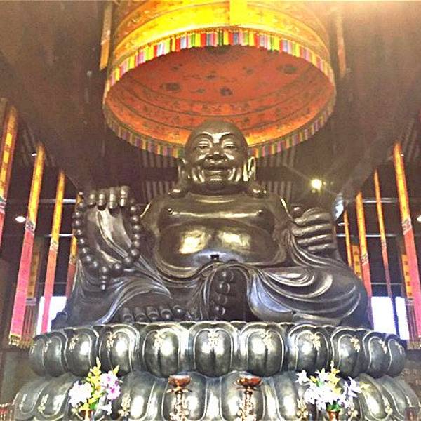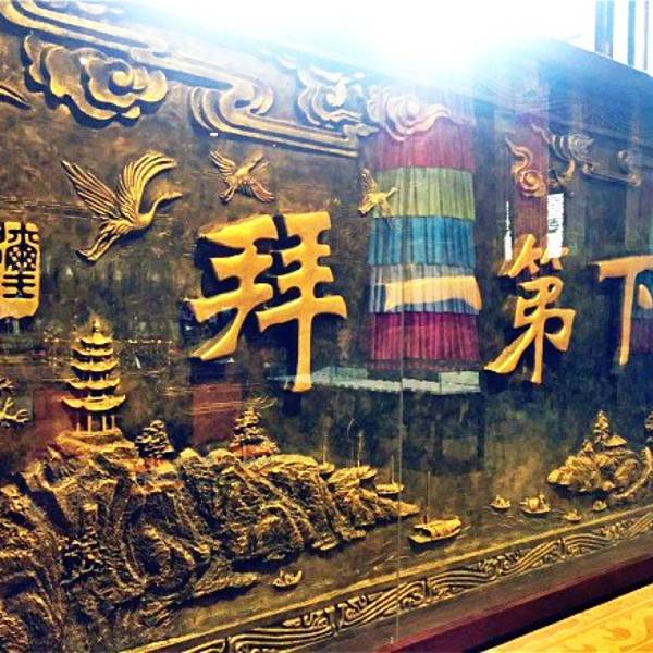 为什么我会选择乌木文化博览苑来作为我的第二站呢?并不是说我对乌木有多么感兴趣,而是因为这座苑内,还隐藏着另一个鲜为人知的「世界之最」。进入苑内,不禁纳闷,为何要在正中间摆这么大一块石头?然后我走进...为什么我会选择乌木文化博览苑来作为我的第二站呢?并不是说我对乌木有多么感兴趣,而是因为这座苑内,还隐藏着另一个鲜为人知的「世界之最」。进入苑内,不禁纳闷,为何要在正中间摆这么大一块石头?然后我走进仔细一看,好家伙!被吓了一大跳。这可是一块正儿八经的化石,从上面我们可以看到各类已经绝迹了的海洋古生物。仅仅是摆在门口的装饰都这么霸气,让我不由得对接下来的行程充满了更大的期待。进入殿内后,一眼就看见了殿内左右摆放着的两只巨大的木雕狮子,霸气侧漏。话不多说,继续往前走,然后直上二楼。这个楼梯也设计的很有趣,听解说员讲,这楼梯每层有七个阶梯,窄窄的通道一共有七个拐,代表了「七七四十九难」。不得不说这个建筑的设计师真是厉害了,连一个没有人会注意到的楼梯都设计地如此用心。上了二楼之后,一眼就看见了五个大字——天下第一拜。旁边有附有非常精美的雕刻,细致而又磅礴,「秋水共长天一色,落霞与孤鹜齐飞」大概也不过如此景致了吧。接着我转身看去,一尊笑呵呵的弥勒佛就出现在了我的眼前。这尊弥勒佛就是我前文中提到的「世界之最」——它是世界上最大的一尊由乌木雕刻而成的俄弥勒佛。请灯,跪拜,抽签……经过了一系列的程序之后,我继续往前走。又一个「佛」吸引了我的注意。这个「佛」有意思了,是个象形字,仔细一看,像个双手合十的人。这让我不禁想一起一句话——人为未来佛,佛为过去人。