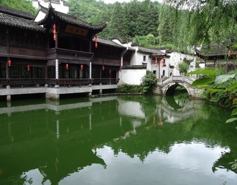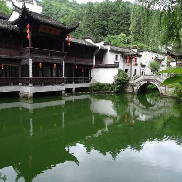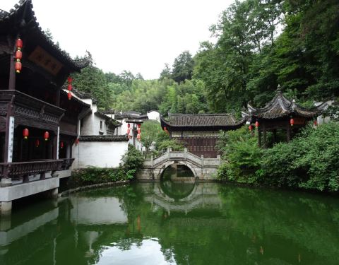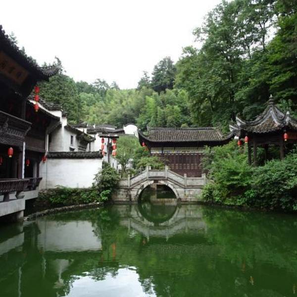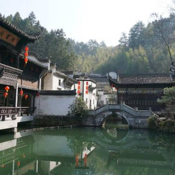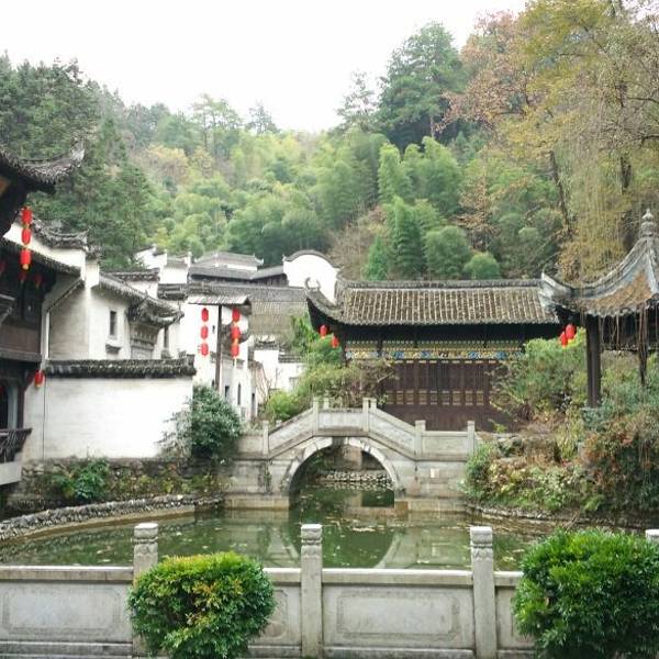 绩溪紫园浓缩了徽州民居构建的各种风格,是一座园林式的建筑群,四面环山,一池碧水,山上松枫掩映,山下房舍栉比,集中了亭台、楼阁、民居、祠堂、牌坊等徽派村落建筑的各种元素。