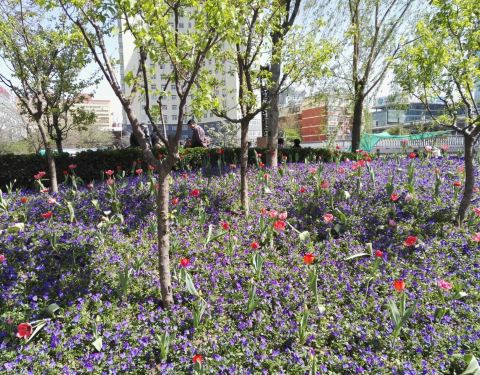 有桥有水有花有草,免费,是休闲散步遛弯遛狗的好地方!