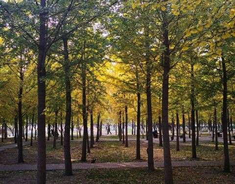 银杏叶落满地时也很美丽的公园,适合家庭周末休闲散步,公园不大,植被不是很高档。
