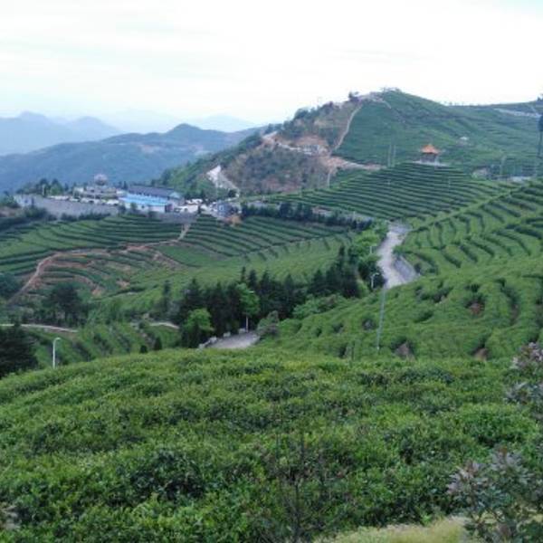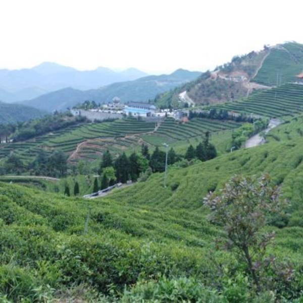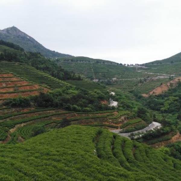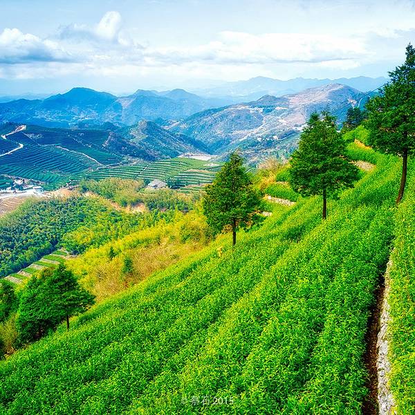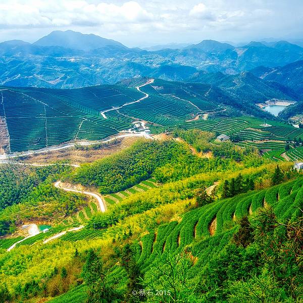 只见闪顶上有个大大的茶壶,羊岩山茶文化园到了站在石岩峰上俯瞰,380公顷的茶场尽收眼底,茶涛如潮,一眼无边,整个羊岩山被绿色地毯覆盖着。 “诗一样的茶行重重叠叠,绿绒一样的茶园郁郁葱葱。”这样的茶园风光应是羊岩山的识别符号,而散落在山岙里的一个个水库,则为连绵起伏的羊岩山增添了几分灵气。