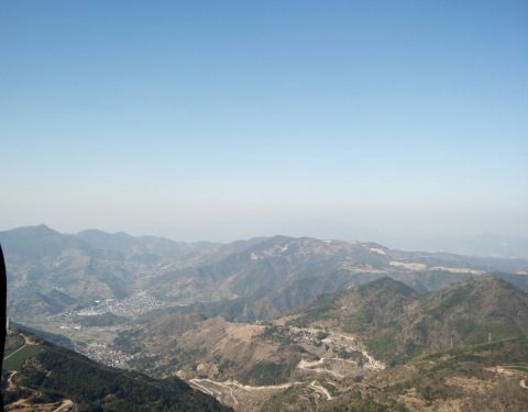 从临海江南长城出发,30公里的路程。汽车开着开着就往山上走,一路经过了乡村、田园,最后在盘山路上一直往上开,一路上都有羊岩山的指示牌。路上遇到几个走山的背包女侠,打听一下道路是对的,风景是不错的。那我们更是轻快地一直到达了山顶。