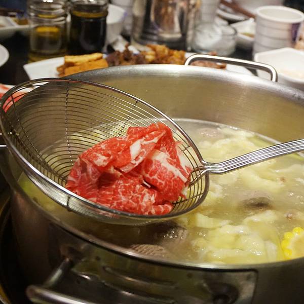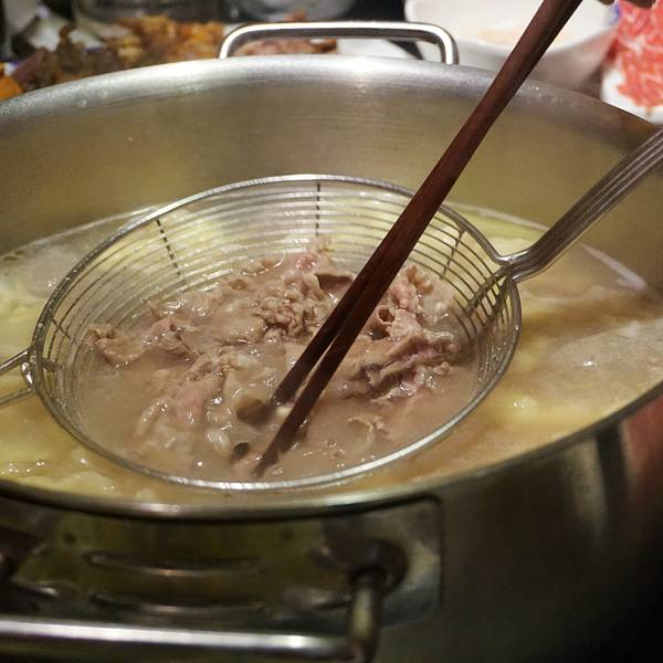 这家是今年刚开的,之前是一家重庆火锅店,最近很流行潮汕火锅,之前自己在家做过,不过牛肉的部分就要差一些了。地理位置不算好,因为在侧街,跟经纬街平行的一条路,离爱建说远不远说近不近,安隆街走到头的地方。对面是一家国际青年旅社,公交车倒是方便,75路,2路都在这附近有站。 环境很干净清爽,厨具基本都是不锈钢的,餐具是塑料的,不过青花瓷花边很惹眼。 有两个小包房,不过容纳不了多少人,8个人还好,超过10个人就有点局促了。下午三点开始营业,只有晚上一个饭口,所以千万别中午去,人没那么多,不用排队。 服务很棒,老板亲自帮忙涮肉,因为牛肉火候很重要,煮久了就老了,口感就会不好,煮短了也不行,所以火候考究。据说食材都是每天从广东空运过来的新鲜牛肉,部位的区分跟我们习惯的也不一样,什么三花趾,五花趾之类的。牛肉切成非常薄的薄片,这样就能很快的煮熟,快速出锅肉质也不会太老,牛肉加热后的纤维化也不用担心了。 价格小贵,人均70以上,因为肉的分量不大,所以两个人三盘肉就要100块,汤底比较简单,所以总消费跟重庆的红油火锅差不多。 炸豆皮,素菜里最好吃的是这个,炸的酥脆的豆皮,因为形状特别不规整,也很易碎,所以不用担心是放了好久的,店里鲜炸的,很吸收汤汁,汤底的肉味都在里面。 白萝卜,其实牛肉火锅最好吃的是萝卜,配上沙茶酱的味道很神奇。 胸口肉,要煮五分钟以上,口感很弹滑,味道很不错。 潮汕牛肉丸,肉丸子口感很好,整块的牛肉敲成肉糜,口感很弹滑,因为纤维还连在一起,价格小贵,38一份。 卤水拼盘,蘸红醋吃,味道不错。 三花趾,五花趾,味道都不错,口感很好。 蟹黄面,其实只是颜色是金黄色的,幸运牌那种,没什么特色。 土豆也很好吃,需要多煮一会儿。 最特色的其实是蘸料,沙茶酱,不能太咸,不能太干,店里用的有点像台湾的那种沙茶,比在汕头买的味道淡些,也没那么辣,口感更好,也不需要汤汁混合。压桌小菜,牛板筋,味道不错,微辣泡椒蝉蛹,微辣,很下酒。牛肉丸胸口五花五花趾三花趾各种不记得名字的肉类卤水拼盘炒粉好吃的炸豆皮土豆,这个8块蟹黄面蔬菜拼盘汤底比较简单,白汤,牛骨头熬制的肉隔着筛网涮变色基本就熟了右边是沙茶,左边是店里配置的微咸的蘸料,总体来说还是沙茶好吃餐具很复古文艺范儿门口店里装修比较简洁,还有些复古调料区灯肉的部位解释跟涮肉提示店里包房里面用简单的隔断桌子不大,放完肉就基本满了