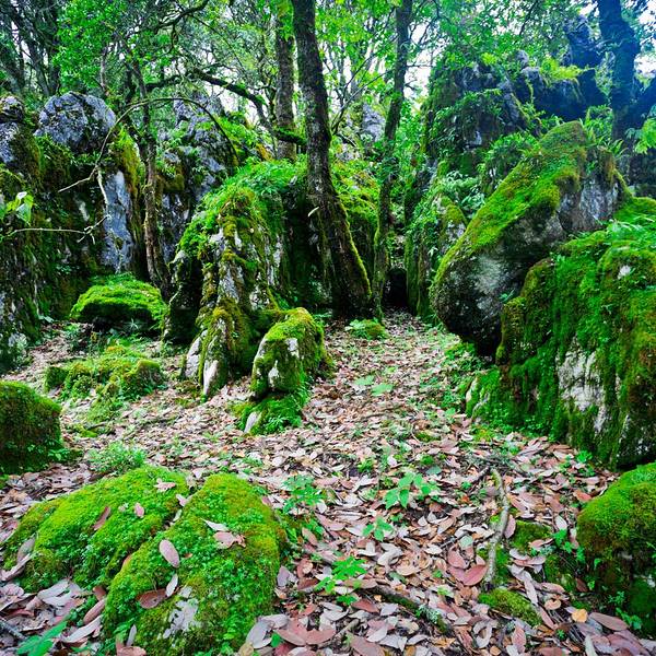 绿石林只有在攀枝花特有的雨季气候,才是如此的壮观!每年夏天的雨季,阴暗潮湿的空气在高大繁密交错的树木掩盖下,石头上因潮湿长满了绿绿的苔藓,这些被苔藓包裹的成片石林美其名曰“绿石林”。