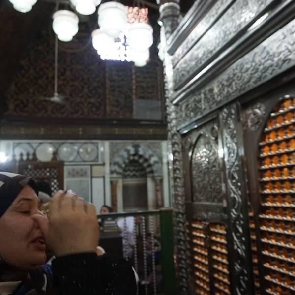 这是侯赛因清真寺,位于哈利利市场旁边,人最多的一个清真寺,这里的人都是来真正祈祷的。