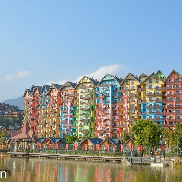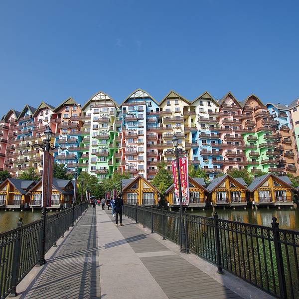 山水环绕,休闲项目众多,彩色建筑让人恍若置身欧洲小镇。