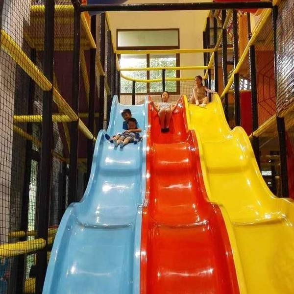 在度假村住一晚 买了一大一小的票子 很多设施都坏了 家长说是不可以上去 但实际工作人员也是允许上去陪同孩子的 里面的和其他游乐场差不多 就是数量上更多 里面的饮料忒贵了 15块一听可乐 建议自带好水