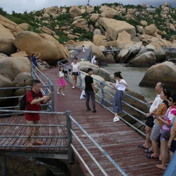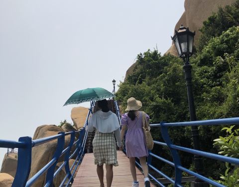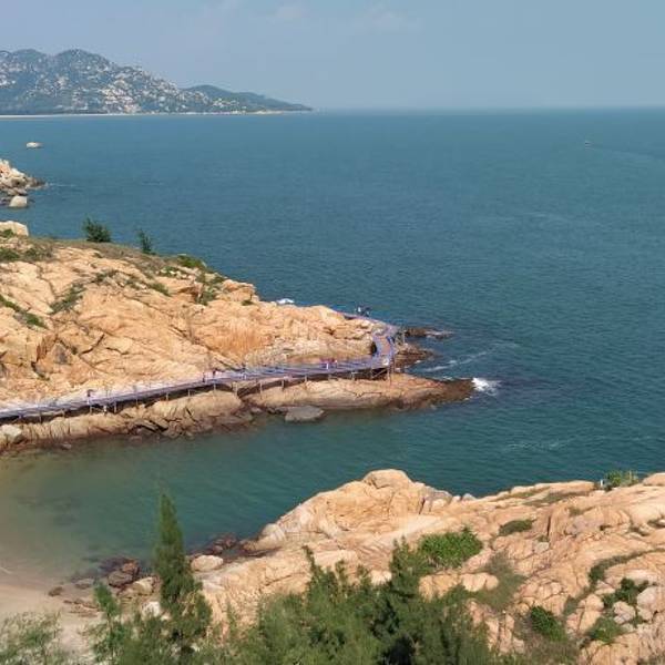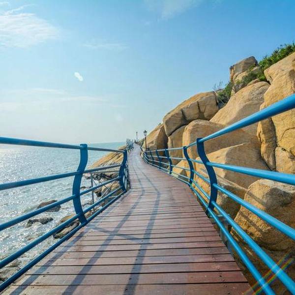 漫步海滨栈道,赏怪石嶙峋之景,沉醉在这迷人海湾。