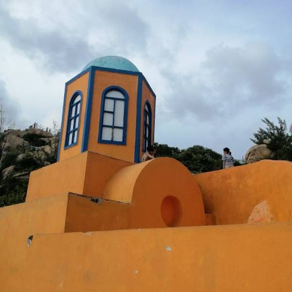 那琴半岛地质海洋公园位于台山市北陡镇南部海湾上,海岸线绵长,海滩上怪石嶙峋,景色十分奇特。公园内还设有度假村,可提供垂钓、烧烤、采摘等休闲娱乐活动。 游玩时可沿着观海木栈桥漫步,感受置身于海景、石林怀抱中的惬意,沿途奇石不断,有灵兔望月、佛脚石、仙猴望海等景色。这里也是看日落的不错之处。 这里有法式浪漫和粉色的岛屿,这里有沙质优良的天然沙滩,各种梦幻场景,爱情车站、藏族风马旗、罗马长廊、英伦铁桥、地中海建筑、空中教堂、夏威夷风情沙滩如希腊的圣托里尼让人柔情诗意,烂漫遐思风情万种的那琴半岛