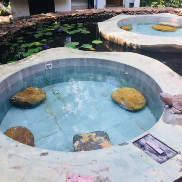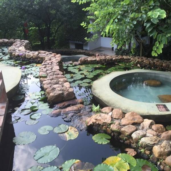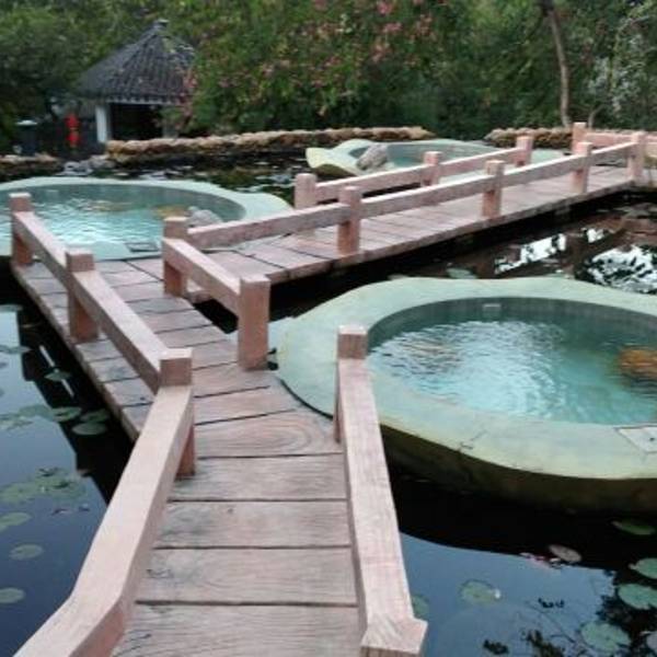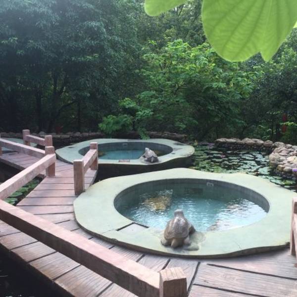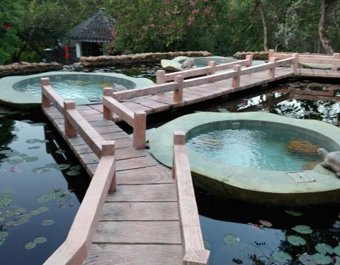 这个地方很不错,可以泡温泉,里面设计比较讲究,有园林设计元素,泡温泉之余可以爬爬后山,看看园林,游人不多,比较适合休闲放松。