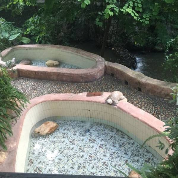 几个沿着小山而建的小温泉,虽然种了花,但实在是,少得好可怜,而且很多都没水不开!十分简陋和陈旧