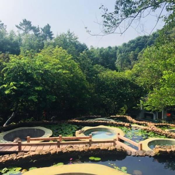 这个地方很不错,可以泡温泉,里面设计比较讲究,有园林设计元素,泡温泉之余可以爬爬后山,看看园林...