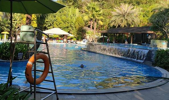 温泉水质不错,泳池很棒!另外,买泳衣的超市特别特别的贵,忘记带泳衣的 大家记得在外面买完再进去温泉水质不错,泳池很棒!因为价格不便宜,人不多。有定时提供水果,但是前台接待和园区服务员都没人告知,等后来自己看网上点评知道的时候过去是8.55分,说都已经没有了,九点结束的,但不是还没到时间吗?这点...温泉水质不错,泳池很棒!因为价格不便宜,人不多。有定时提供水果,但是前台接待和园区服务员都没人告知,等后来自己看网上点评知道的时候过去是8.55分,说都已经没有了,九点结束的,但不是还没到时间吗?这点很不满意,一百多一个人就只有茶水而已。另外,买泳衣的超市特别特别的贵,忘记带泳衣的 大家记得在外面买完再进去! 没有滑滑梯等 儿童游乐区,比较遗憾,不适合带小朋友去玩! 展开
