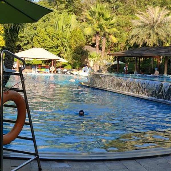 还不错!不到一点就到了,幽静,没人是第一优势,工作人员说水是每天换新的刚换好!午餐价位不低不到一点就到了,幽静,没人是第一优势,工作人员说水是每天换新的刚换好!环境看图喽!还不错!户外泳池足够大被阳光晒的温度正合适!儿童泳池是温水。三四点开始上人了刚好我们也离开了。午餐价位不低。