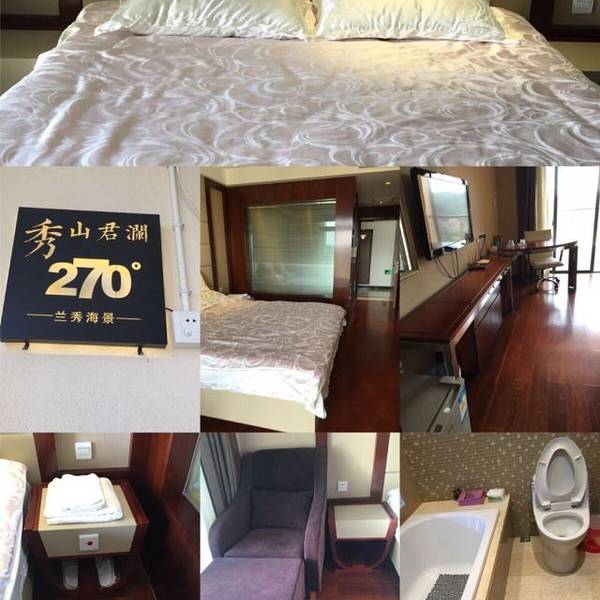 房间特点:270°L型超大观景阳台全海景,可观日出日落,海边沐浴,卫生间和床上都可以看海。零距离私家沙滩,可以享受前景君庭酒店无边泳池,免费租赁自行车环岛骑行。