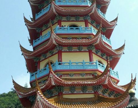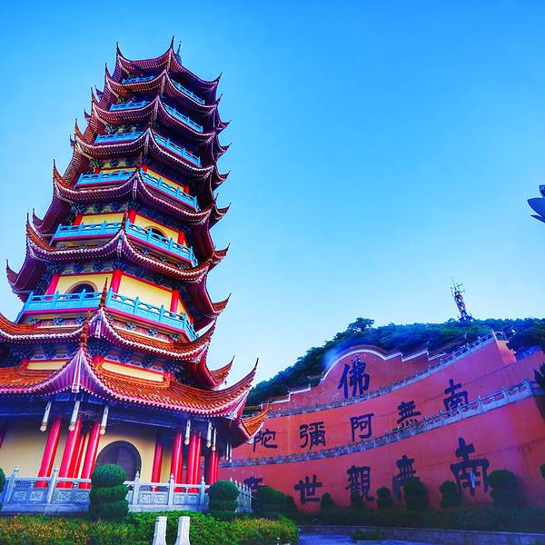 但这样的海上日出也是非常美艳动人啊。看日出必须去塔顶,但这塔早上是不是开门,要看运气我们住在县中心安澜路步行街的连锁酒店,离摩星山不远,只有几公里,早起开车去山顶的观景台看海上日出和海上千岛湖的美景,非常方便。最主要的是,太早景区还没上班,免票思密达。车可以直接开到山顶,从停车场...我们住在县中心安澜路步行街的连锁酒店,离摩星山不远,只有几公里,早起开车去山顶的观景台看海上日出和海上千岛湖的美景,非常方便。最主要的是,太早景区还没上班,免票思密达。车可以直接开到山顶,从停车场的小门走到最高处的这座蓬莱玉佛宝塔只要几分钟。看日出必须去塔顶,但这塔早上是不是开门,要看运气。我们去的这天正好日出的时候开门打扫卫生,但有时候开门会晚一些。如果登不了塔,下面的观景平台景色也是相当不错的,视野很开阔,唯一的遗憾是日出会被山坡阻挡,看不到太阳从海面升起的那一刻。我们去的时候塔门紧闭,门外有不少早起锻炼的人在活动,太阳正在升起,正好有人来开门打扫卫生,大姐说平时会晚点来,今天起早了,哈哈真是人品大爆发啊。连滚带爬的上到塔顶,因为天边有云,所以太阳露出来时已经离海面有一段距离了。但这样的海上日出也是非常美艳动人啊。俯瞰掩映在摩心山南的绿树丛中的慈云极乐禅寺,摩星山秀丽挺拔,四季树木葱茏,环境幽雅宁静,气候宜人。这里位置极佳,三面环山,一面临海,山岗绵延叠翠,因为山顶是岛上最高处,所以既可以看日出,俯瞰岱山县城的全景,而且视野开阔,还可以环顾四周海景,尽览海上千岛湖的绝美风光。岱山是舟山第二大岛,除本岛外,全县三百多个大小岛屿犹如一串闪亮的宝石镶在东海碧波之中,岛海相依,水天相连,宛如仙境。县城新姿、大海、群岛、渔港等景色尽收眼底,如果运气好遇到云雾环绕,景色会更加变幻莫测,碧海绿洲,时隐时现,恍入蓬莱仙境。离开蓬莱玉佛宝塔去下面的慈云极乐禅寺,这宝塔虽然离慈云禅寺挺远,但是属于禅寺的一部分。 展开