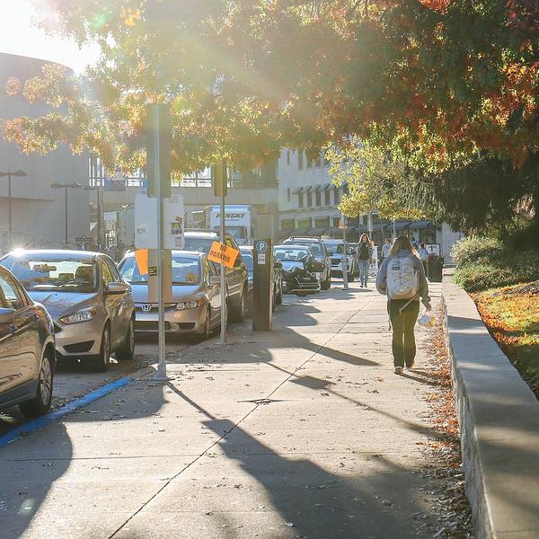 匹大在奥克兰区,没有围墙,直接开车就从市中心到校园内了,是传统古老开放式校园在大学区域停好车,刚好周日全部免费,然后下车到处走走看看。