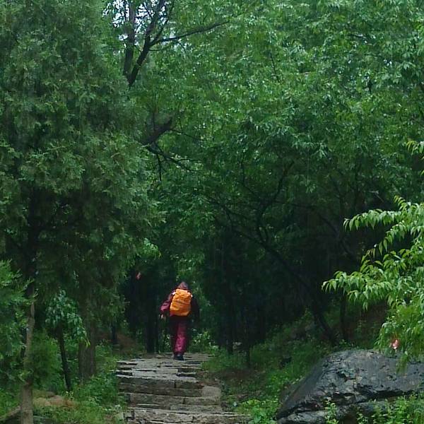 山道很好走,时而步行在鹅卵石上,时而沿石板台阶拾阶而上,在碧绿的山间穿行,一步一景,很是享受