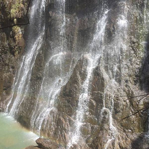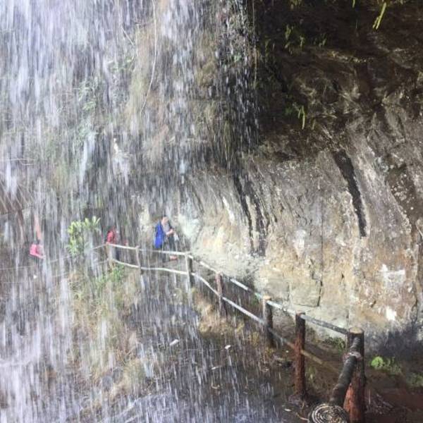行走在修建于在崖壁上水帘后的长廊步道,感觉不错亚洲第一阶梯瀑布,共有九级。景区里植被茂盛、瀑潭成群、山风清新、空气凉爽,是夏季休闲消暑的好去处。行走在修建于在崖壁上水帘后的长廊步道,感觉不错!
