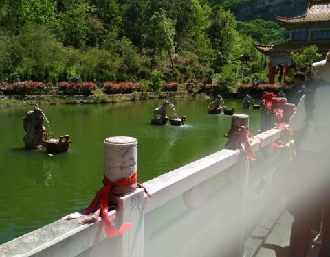 门口有一个人造瀑布,景区内人不多,停车位很多,山上标识不清,地图上标注的好多景点都没修好,半路上有个戏台,总体上感觉一般。