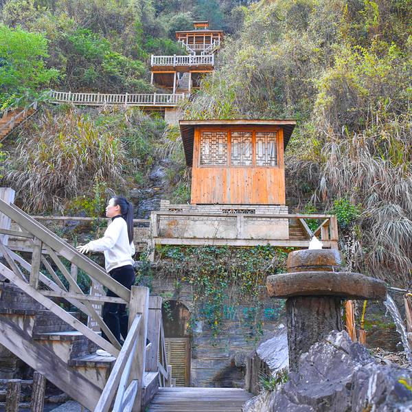 ...异,崖陡洞多,特别是一条高达数十米的飞泉,一年四季飞珠溅玉,成为小桃源内排名数一数二的精彩景点如果你也来缙云自驾旅行,那一定要留足时间在仙都景区。爬山还是比较累,休息充分了,第二天可以在大龙门景区等景点游历。位于括苍山深处的大龙门景区,棠溪流域上游,小桃源古城内,离唐市三村约三四华里的硛旧...如果你也来缙云自驾旅行,那一定要留足时间在仙都景区。爬山还是比较累,休息充分了,第二天可以在大龙门景区等景点游历。位于括苍山深处的大龙门景区,棠溪流域上游,小桃源古城内,离唐市三村约三四华里的硛旧村村口。这里山高林茂,坑深水清、石奇岩异,崖陡洞多,特别是一条高达数十米的飞泉,一年四季飞珠溅玉,成为小桃源内排名数一数二的精彩景点。中心位置是缙磐交界处的二个并列大峡谷,全长达10多公里,有水域面积100 多亩,谷里山坑溪畔,溪鱼成群,飞鸟结对,美不胜收。其中四绝四好,四绝:括苍飞瀑、石门峡裸岩区、石灰洞、硳旧千年古树群;四好:水好、鱼好、溪好、空气好。虽然是孟春时节,其实还不算是丰水期,但是大龙门景区水量非常充沛。进入景区的游览线路,非常有特色。进入即是临水巡步,一路途经,亭台楼阁,最后踩着铺就在水道里的石磨进入。从上善居进入,则是一个精致的小院落,抬头仰面还有悬崖木屋。在这平台之上,坐着秋千,环顾四周,还真是野趣非常。小桃源古城雄踞括苍山口,关外是缙云最大、人口最多的壶镇小平原,关口层峦叠嶂,关内柳岸花明,鸡犬相闻。小桃源古城 起建于宋绍熙年间(1194年),开凿山岩十余丈,建内外石拱门二道,外门上书“小桃源”三字,清乾隆丙午年重建,内门增“桃源深处”四字,传为一云游和尚所书,此和尚正是游江南的乾隆,乾隆易 服游玩到小桃源,赞叹不己,写下“桃源深处”四字,捐赠里人、增建洞门。小桃源古城又称“大门”、“大门洞”,古城边有超然亭和如在庵,都是明清旧物。龙文化在大龙门农家乐综合体有着神奇 的起源、内涵。景区入口处,北洪村向阳的黄土坡地,相传是远古恐龙繁衍地,括苍林场在修建盘山公路时,多次发掘出恐龙化石,因此,此山被当地称为龙山。景区中,鸭鹅成群,鸟语花香,人与自然和谐共存的景象,令人愉悦欣然。这个“小桃源”虽然只有3A级,但是难得到缙云游历的人而言,也是不可多得的体验。 展开