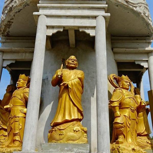 大雄宝殿连接的一列庙宇,一看就是才建起来的,倒是干净了许多,也比...大年初一去烧香,门票40,因为春节吧,人超级多,一进景区里面好多卖小吃的路边摊,脏乱差。