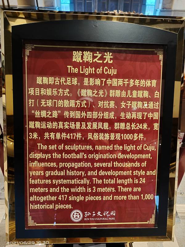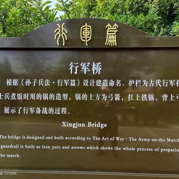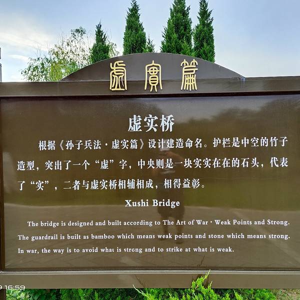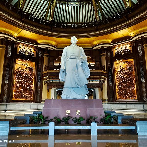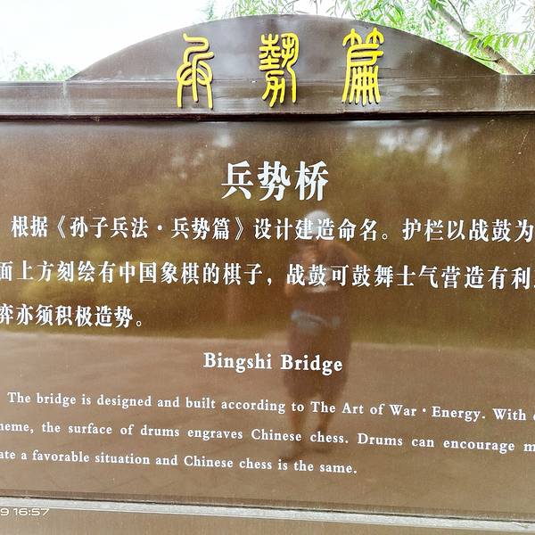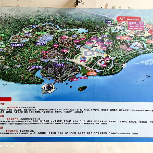 兵圣宫将中国古代20个杰出军事人物、著名战役及孙子文化的内涵进行集中展示,它俨然伫立在孙子文化...孙子文化园坐落于山东省广饶县,国家4A旅游景区,是围绕孙武湖建设的一个以兵家文化为主题的休闲乐园,系统全面展示了孙子文化,是传承和弘扬孙子文化的基地。园区内根据孙子兵法与孙武的传奇人生建设了十三桥与...孙子文化园坐落于山东省广饶县,国家4A旅游景区,是围绕孙武湖建设的一个以兵家文化为主题的休闲乐园,系统全面展示了孙子文化,是传承和弘扬孙子文化的基地。园区内根据孙子兵法与孙武的传奇人生建设了十三桥与十三园,依托孙武湖天然水上优势,以生态观光、兵家文化、休闲度假为主题脉络,具有高品质的旅游度假功能。景区很大,我们在里面游览了两个多小时。孙子文化公园的大门,是用十三块巨石堆砌成一个汉字“兵”字,用来提示我们的公园,是以《孙子兵法》军事谋略思想为主题的,十三块巨石,暗指《孙子兵法》十三篇;巨石上方镶嵌的地球仪,寓意《孙子兵法》和孙子文化的影响已经波及全世界。“兵”字形大门气势恢宏,大门前方的广场上,是一尊以“势”命名的大型雕塑。孙子文化园孙子文化园孙子文化园竹简雕塑。竹简雕塑共分左、中、右3组,无论是俯视还是平视,整组竹简雕塑均呈“品”字形排列。平视时,中间主体最高,两侧逐渐降低,形成汉字“山”形,象征着兵家鼻祖孙子高山仰止的兵学造诣。孙子文化园竹简雕塑孙子文化园兵器馆。陈列古代不同时期不同兵种使用的各种兵器,并以现代手段复原制造过程,让游客体验互动,寓教于乐,直观展现古代兵器演变史。孙子文化园兵器馆孙子文化园兵器馆孙子文化园兵器馆孙子文化园兵器馆孙子文化园兵器馆孙子文化园兵器馆孙子文化园兵器馆孙子文化园兵器馆孙子文化园兵器馆孙子文化园兵器馆孙子文化园兵器馆孙子文化园兵器馆孙子文化园兵器馆孙子文化园兵器馆孙子文化园兵器馆孙子文化园兵器馆孙子文化园兵器馆孙子文化园兵器馆孙子文化园兵器馆孙子文化园兵器馆孙子文化园兵器馆孙子文化园兵器馆孙子文化园兵器馆孙子文化园兵圣宫。后世的人们尊称孙子为兵圣,兵圣宫也就因此得名。兵圣宫将中国古代20个杰出军事人物、著名战役及孙子文化的内涵进行集中展示,它俨然伫立在孙子文化园的中轴线上气势磅礴,如一位志向远大的将军在指挥着千军万马,又似一颗璀璨夺目的明珠为孙子文化园,增添了浓墨重彩的一笔。整座宫殿约有三万多平方米高二层,是一座仿古的建筑,外墙前面采用的是石雕艺术,以刀代笔刻画着士兵执戈握戟,描绘了战争激烈的场面,外墙后面展示的是春秋时期的士、农、工、商的盛世场面,石刻精美无一不是大师的手笔。步入兵圣宫,便被它的精美与壮丽所钦佩。兵圣宫有四个门,每个门都有一个神兽,东青龙、西白虎、南朱雀,北玄武,以此来烘托兵圣宫的文化气息。在兵圣宫的中央有一座高约六米的孙武雕像,他是由汉白玉雕刻而成。他神情严肃的眺望着远方,一手持剑一手拿着竹简,展现出他的雄才大略,仿佛是望着训练有素的士兵,又似看到了他所著作的《孙子兵法》在世界的广泛流传。孙武像的顶上是一个圆形的穹顶,与地面的方形相辅相成,形成天圆地方的思想,天时地利人和的融会贯通,又展示了兵家文化与天时地利人和的密切关系与利用。兵圣宫里雕梁画栋美不胜收,而其中最引人瞩目的是四副东阳木雕,分别是身先士卒、运筹帷幄、严阵击敌、王师凯旋,这可是中国非物质遗产东阳木雕,是国宝级大师陆光正所做,国宝级的文物乃是无价之宝。。孙子文化园兵圣宫孙子文化园兵圣宫东阳木雕孙子文化园兵圣宫东阳木雕孙子文化园兵圣宫东阳木雕孙子文化园兵圣宫孙子文化园兵圣宫孙子文化园兵圣宫孙子文化园兵圣宫孙子文化园兵圣宫孙子文化园兵圣宫孙子文化园兵圣宫孙子文化园兵圣宫孙子文化园兵圣宫蹴鞠之光展孙子文化园兵圣宫蹴鞠之光展孙子文化园兵圣宫蹴鞠之光展孙子文化园兵圣宫蹴鞠之光展孙子文化园兵圣广场孙子文化园乐安古镇,是按照春秋时期乐安古城的空间特点和生活风俗,复原的傍水民居群落,以体验式商业为主要内容,古镇内泉水交织,古香古色,具有很浓郁的古乐安特色。孙子文化园恩泽园:园中的雕塑展示的是孙武的祖父田书接受齐景公“赐姓孙氏”的场景。孙子文化园寻根园。参天之木,必有其根,环山之水,必有其源。寻根园共收集姓氏121个,也为人们寻找宗脉源流,提供了重要的依据。孙子文化园寻根园孙子文化园中山园是我们为安放伟大的革命先驱孙中山先生的铜像而专门开辟的。乐安孙氏始源地,孙中山先生铜像是孙中山先生的孙女孙穗芳向广饶县捐赠的。孙子文化园十三桥。根据《孙子兵法》十三篇设计建成的十三座造型各异的桥梁是孙子文化园的点睛之笔,地形桥、行军桥、九变桥、军争桥、虚实桥、兵势桥、军形桥、谋攻桥、作战桥、始计桥、用间桥、火攻桥、九地桥,桥桥惊心,置身其中,游客们往往不知道自己是被“桥”征服,还是被《孙子兵法》征服。孙子文化园兵势桥孙子文化园虚实桥孙子文化园虚实桥孙子文化园军争桥孙子文化园军争桥孙子文化园九变桥孙子文化园九变桥孙子文化园行军桥孙子文化园行军桥孙子文化园地形桥孙子文化园地形桥 