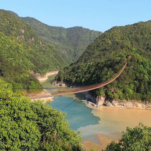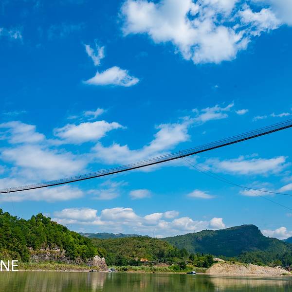桥身由十七条规格不等的钢索和若干钢丝网、角铁、螺丝帽构成,两端用桥塔固定,总长358米,桥面1.4米,离水面高48米,为中国之最。正常气候条件下可容纳100人同时通行,为了达到100%的安全,一般限制40人以内通行。因桥面采用钢丝网,可以直观桥底,走在其上迈出的每一步感觉都是空的,令人有飞一般的感觉!游客可以在这里充分感受云中漫步的感觉。 展开