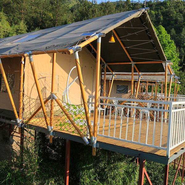实用 这里有12顶帐篷,命名便是十二星座,我更喜欢这个花园式的大厅,空调房里,阳光透进来,不负好时光啊第二天一早,我们便驱车前往白鹤山庄的钢索桥。话说这桥,由17条规格不一的钢索和若干钢丝网等等等构成的,长有358米,桥面有1.4米(可我怎么还是觉得我快要掉下去了),离水面最高距离有48米(恐高人员慎入),...第二天一早,我们便驱车前往白鹤山庄的钢索桥。话说这桥,由17条规格不一的钢索和若干钢丝网等等等构成的,长有358米,桥面有1.4米(可我怎么还是觉得我快要掉下去了),离水面最高距离有48米(恐高人员慎入),还没有踏入桥面之前,就已经被入口的各种称谓给吓到。世界吉尼斯纪录第一长人行悬索桥,走起来可真是让人害怕。正常的气候条件下,这座钢索桥可以容纳100人通行,今天天气很好,微风少许。刚走进去觉得这桥还挺稳的,可走出几十米外,就开始有点摇晃不定了。走了许久,按理说过了桥中心应该开始上行了,可一直都还在下行的途中,任我怎么走也难以到得了桥的中心点,我腿都软了。有一些路,总是需要自己去走的,就算寸步难行,也得迈出那一步来。眼看着离桥头已经很远,彼岸还稍微近一些,硬着头皮也得走完啊。好在最后是踏踏实实地把这条桥走完了,到了对面,我们前往受星宿观摩观摩。这里有12顶帐篷,命名便是十二星座,我更喜欢这个花园式的大厅,空调房里,阳光透进来,不负好时光啊。稍作休息之后,还是辞别了受星宿,平日里其实是可以坐船回到对岸,无奈最近处于枯水期,我们只得原桥返回,意味着又要感受一次晃晃悠悠的吊桥时光。在桥上俯瞰着脚底,一江碧翠一江滩,桥下的飞云湖是由三条溪流汇聚而成,分别是司前溪、竹里溪以及三插溪,在桥上望着四周是群山鼎峙,山高涧深,重峦叠嶂。 展开