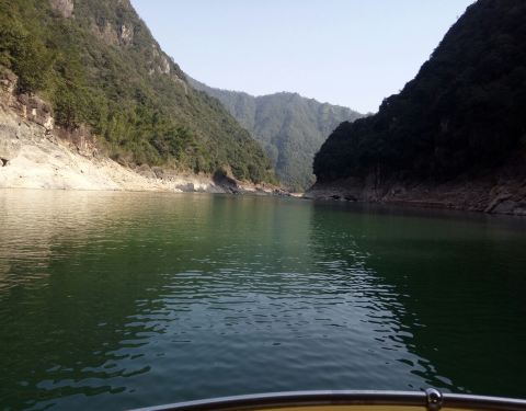 其实这个白鹤山庄它只是南漳水镜湖风景区里面的一个小部分,一面是山,三面都是水。在泰顺,乃至整个温州都是这样,景区里面套景区,美景里面装美景,山清水秀,环境宜人。荡舟湖心的时候,整颗心都是安静的。山庄的创办人是农民企业家张仰瑞,他在距离泰顺县城20公里处,选了这么一块地方,飞云湖畔,倚山傍水,原始风光,又颇为雄奇秀美,从温州开车2小时可以到达,从文成开车1小时可以到达。