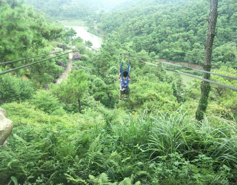 网上提前订的票,到景区大门售票处凭订单取票,比现场购票便宜10块钱,门票包含游玩项目。 可以开车进入景区内,停车免费。总体来说很好,周围都是青山绿水,环境优雅,空气清新,水质清澈,滑索好爽很刺激,豪华...