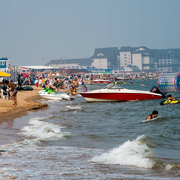 东戴河国际度假浴场位于辽宁省葫芦岛市绥中县万家镇新民村,海滨岸线水清沙幼,碧海蓝天,绮丽海景风光是北方地区的美丽优质海滩。
