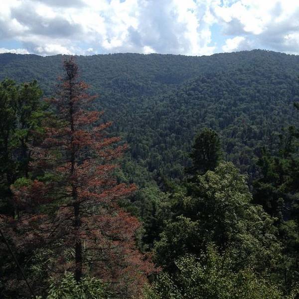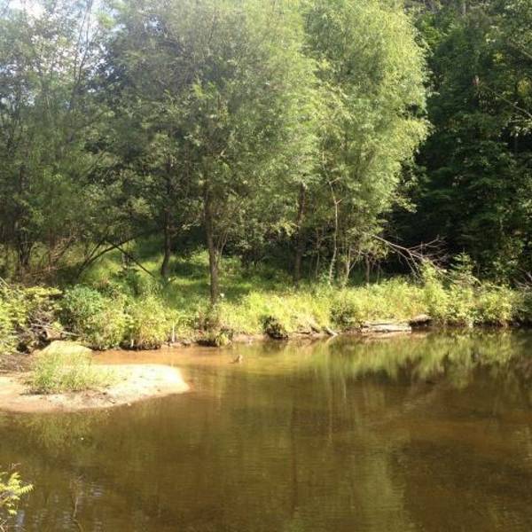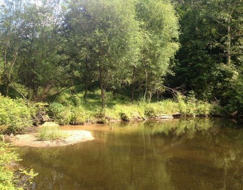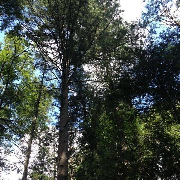 景色漂亮!天然红松、蓝天、白云、溪流交相辉映!