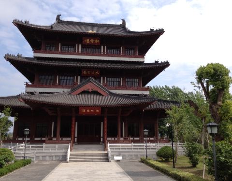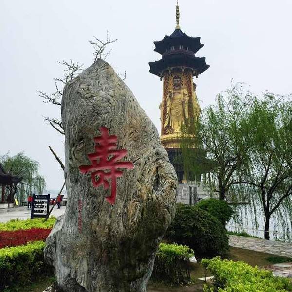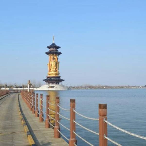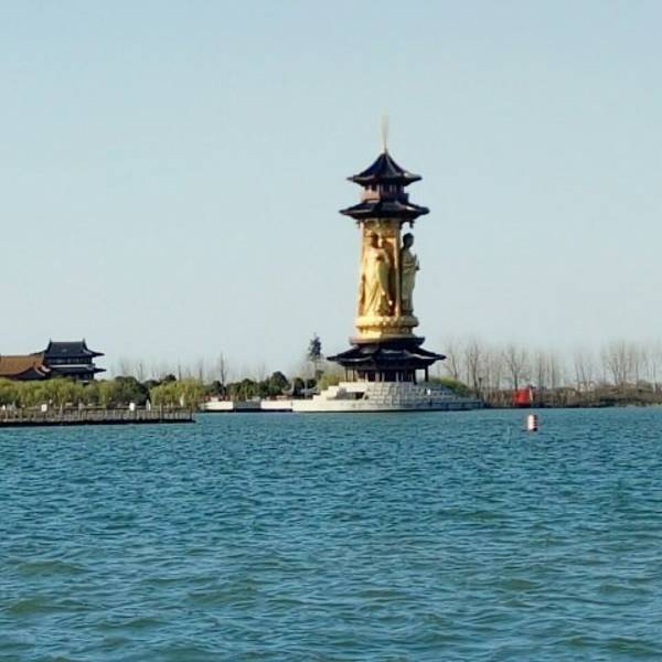 位于江苏泰州的溱湖湖畔,环境优美!佛门音乐让人心情放松,可以登塔看溱湖湖景