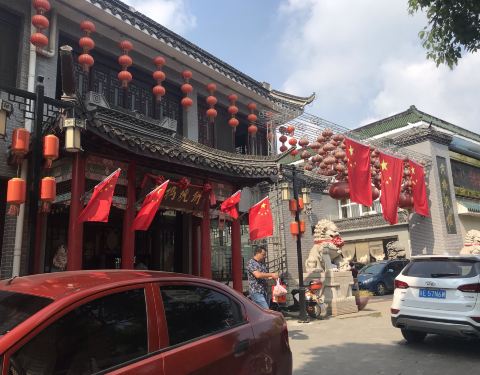 在黄桥古镇中心的大香台上观看的街景。 黄桥烧饼为黄桥镇填色不少