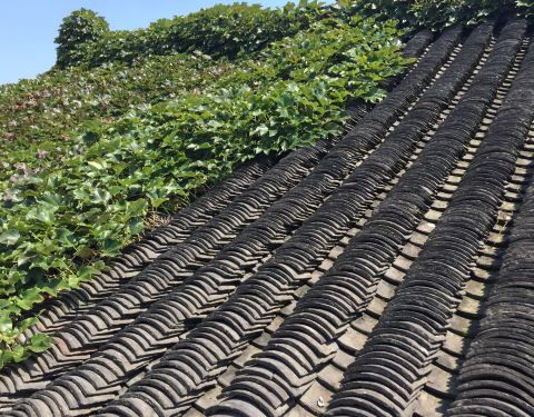在黄桥古镇中心的大香台上观看的街景。大香台是小街巷交叉口的那栋城门楼式的建筑,紧依着韩秋岩史料研究馆,韩秋岩馆坐落在老规制的住宅中,屋顶的福寿祿,太平八卦图案的瓦当是原物吧,黑瓦屋顶爬满了藤蔓,墙...