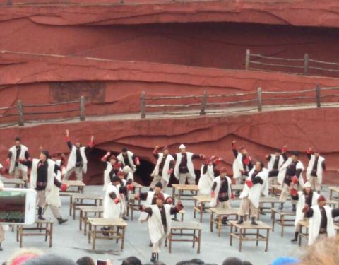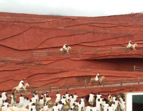 表演很震撼,加上自然风光做背景,更加为表演添彩了
