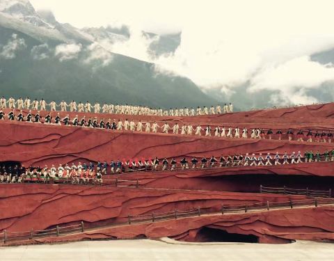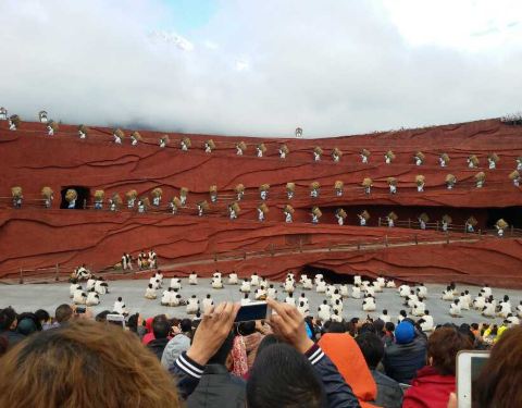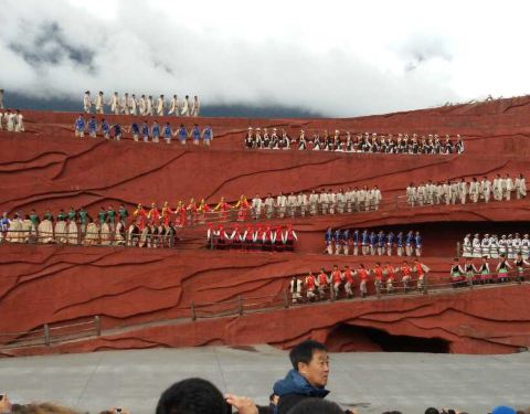 表演很震撼,加上自然风光做背景,更加为表演添彩了。场面浩大,表演人员都很卖力,很质朴,演绎了纳西族的动人故事,很有民族风情。