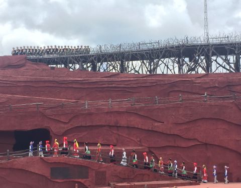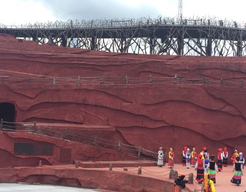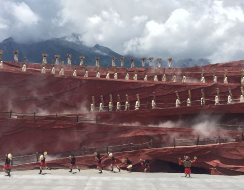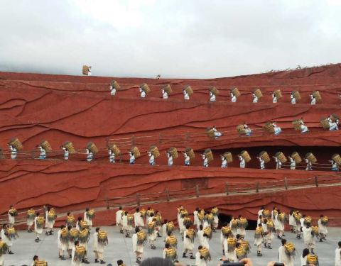 运气不好,不过正赶上下雨,不过500个当地演员很卖力气,完整表演!领略当地少数民族的风土很好