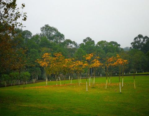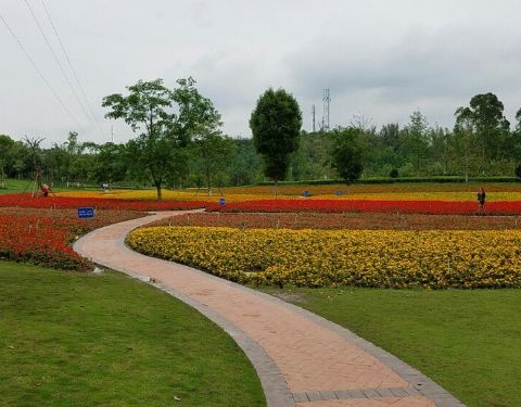 自贡花海是自贡釜溪河畔打造的复合绿道,严格意义讲这里的生态价值大于旅游休闲价值。景观相对比较单一,湿地和绿地较多,主要是小的常见花卉,并没有花海真正的感觉。洗肺还是一个不错的地方,骑车环游可以体验一下。