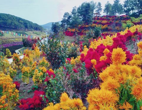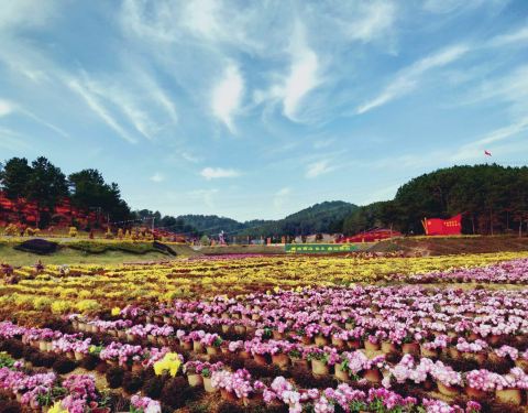 五脑山森林公园,位于麻城,一般春节前后来这里游玩,以赏茶花为主五脑山森林公园,位于麻城,一般春节前后来这里游玩,以赏茶花为主。没想到这个季节五脑山也这么美,漫山遍野的菊花,五颜六色,再配上大红的鸡冠花,美翻了。